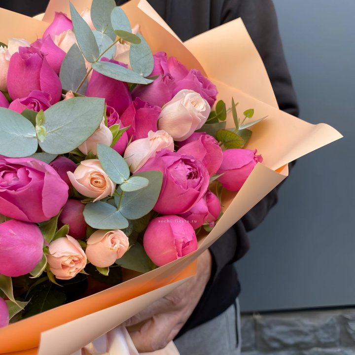 Кустовые розы с эвкалиптом