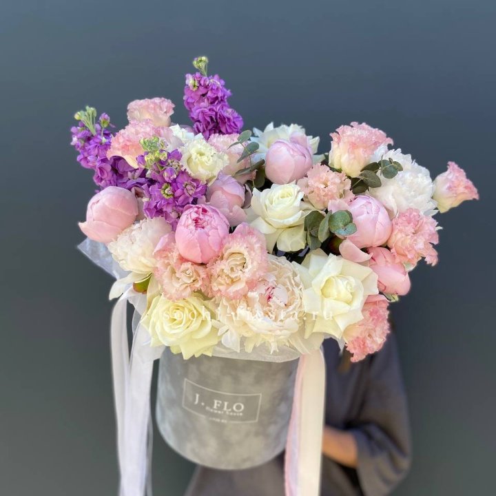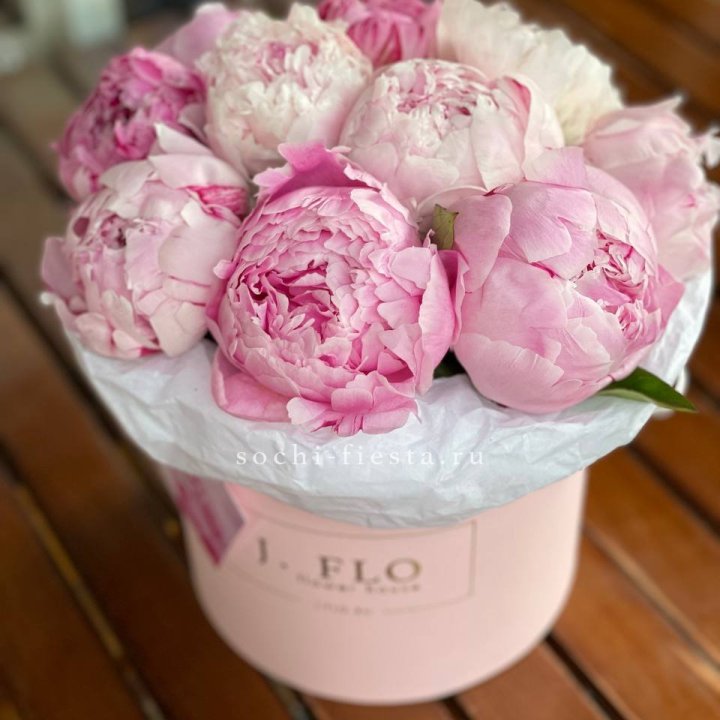 Дизайнерский цилиндр с пионами "Ривьера"