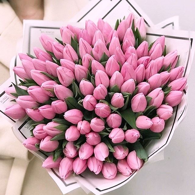 101 розовый тюльпан, лента, дизайнерская пленка.