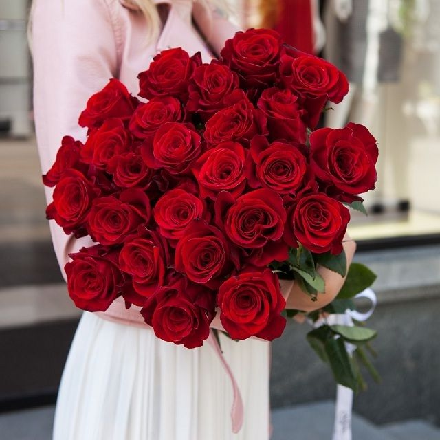 35 красных роз под ленту.