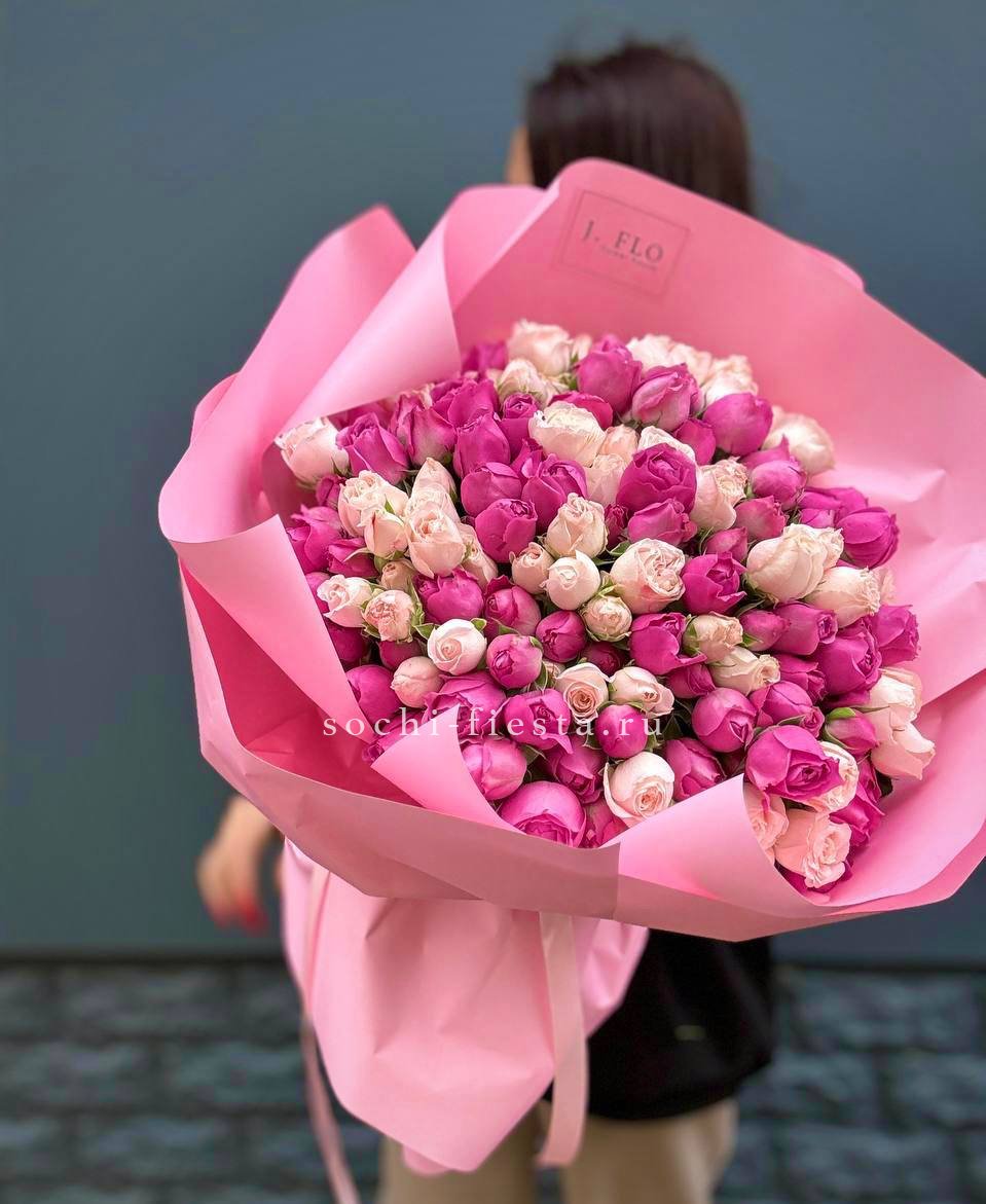 51 пионовидная кустовых роза Мисти Баблс и бомбастик.