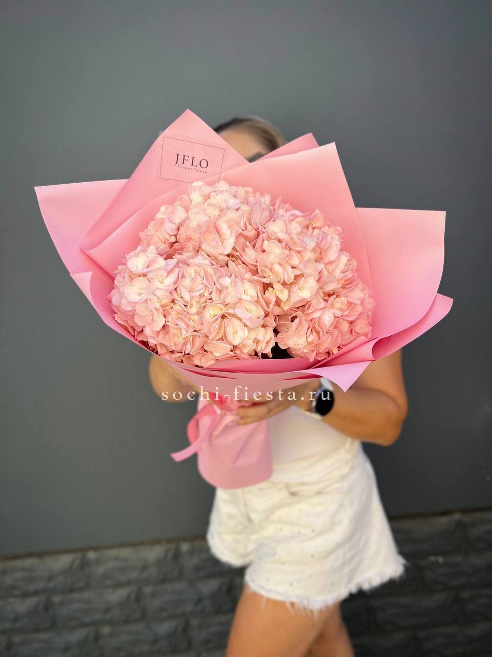 гортензия - 3 шт., лента, дизайнерская упаковка.