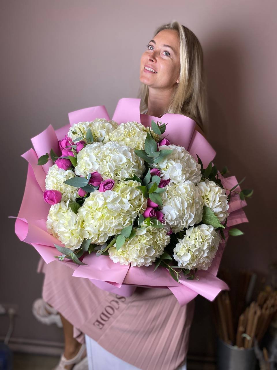Для заказа товара "Букет с гортензией №3" с доставкой в Ростове-на-Дону нажмите в корзину
