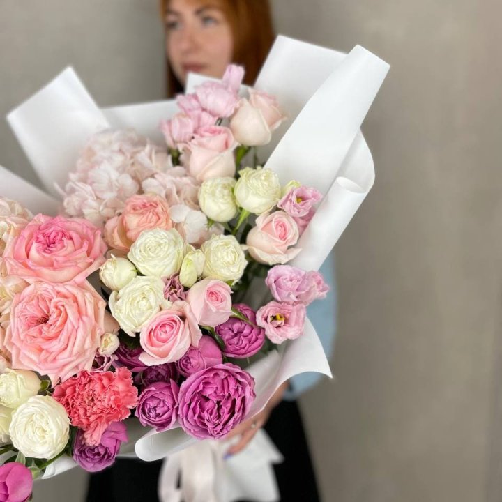 Диапазон цен: от 2800 до 30 000 рублей. Небольшой авторский букет из сезонного материала — 2800-6000 руб. Средний авторский из David Austin — 6000-14 000 руб. Корпоративный авторский подарочный — 8000-20 000 руб. Авторский букет невесты — от 9000 руб. в зависимости от состава и формы. Флорист согласовывает бюджет на этапе консультации и предлагает оптимальный вариант.