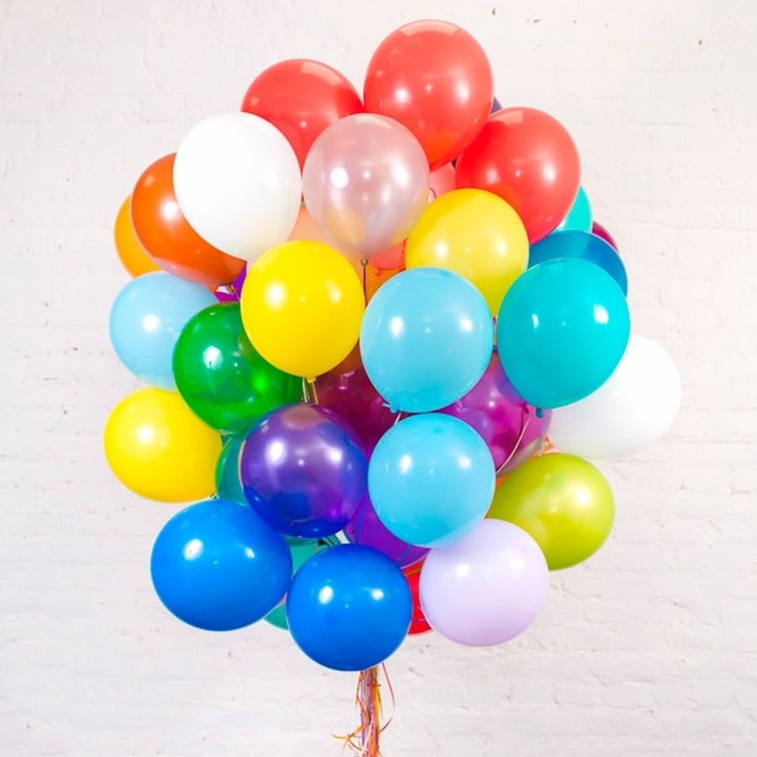 фонтан из 15 гелиевых шаров золотых, серебряных и чёрных оттенков с грузиком. Все шары мы предварительно обрабатываем специальным составом Highfloat, обеспечивая им длительный срок полета.