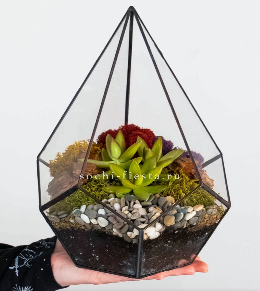 флорариум в кашпо Капля идеален для подарка искушенным и практичным личностям. Растение неприхотливо в уходе, композиция стильно смотрится в любом пространстве:)