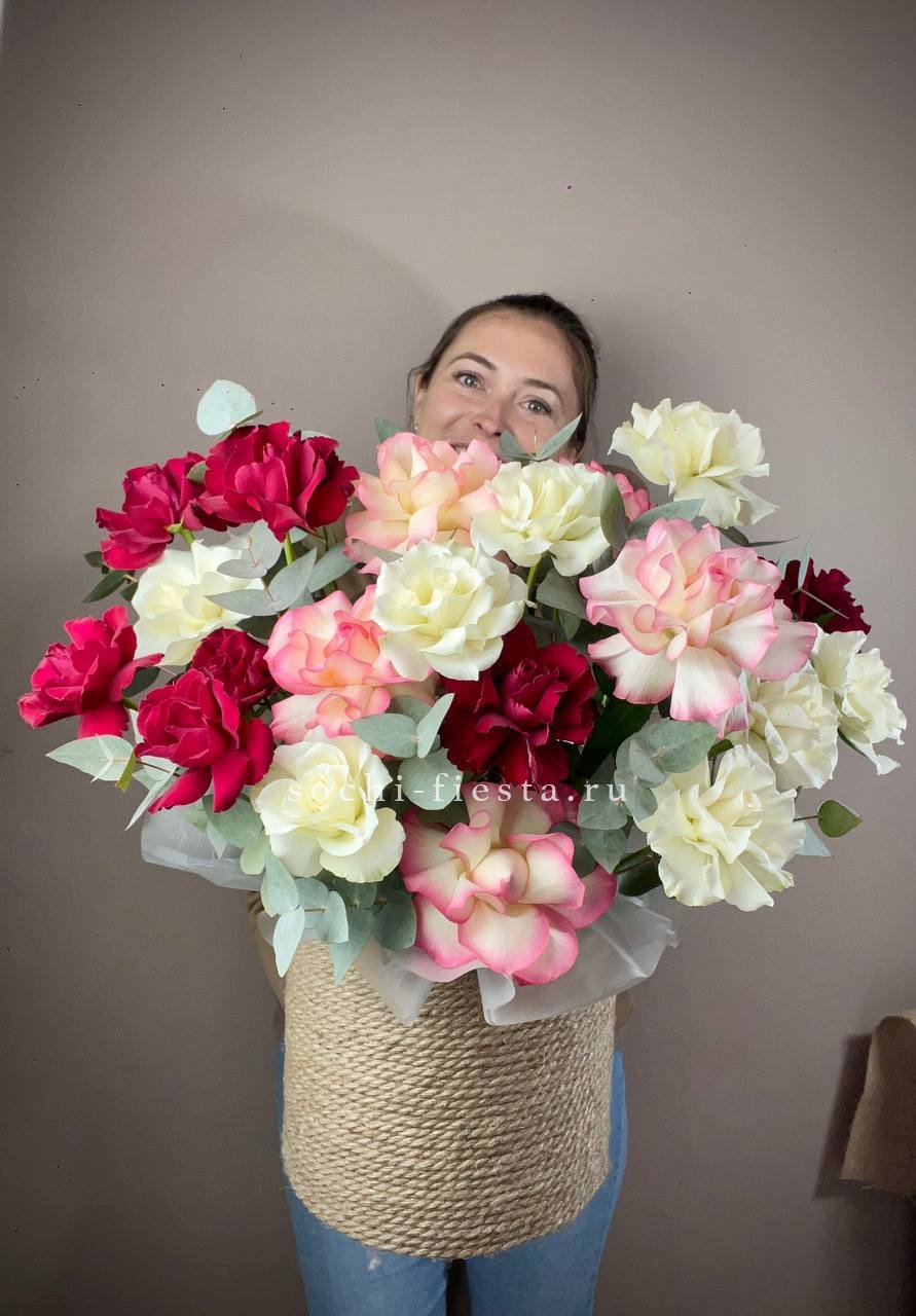 Для заказа товара "35 французских роз микс в джутовом боксе" с доставкой в Ростове-на-Дону нажмите в корзину