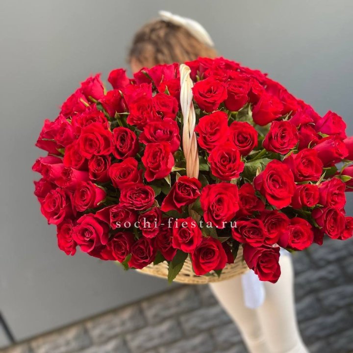Большая именинная корзина — ростовская специализация. Флорист наполняет объёмную плетёную корзину розами куполом, добавляет зелень и декоративные элементы. Размер корзины — 40-60 см в диаметре — говорит о масштабе поздравления. Именно такой подарок несут на юбилей директора завода или на свадьбу уважаемой семьи. В Ростове объём читается как уважение.