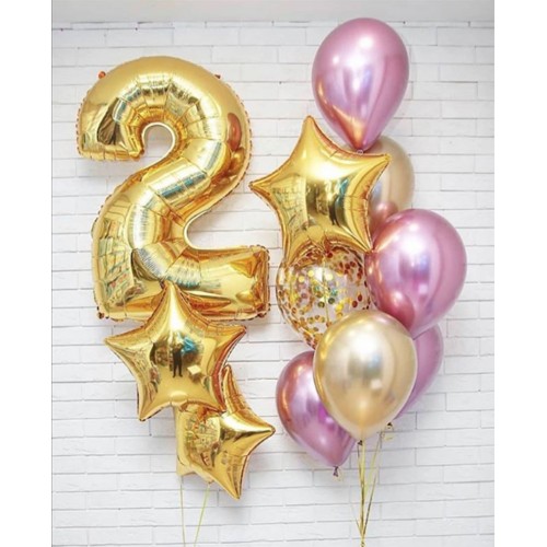 5 шт. золотых шаров, 5 шт. розовых шаров, 5 шт. бежевых шаров, грузик.