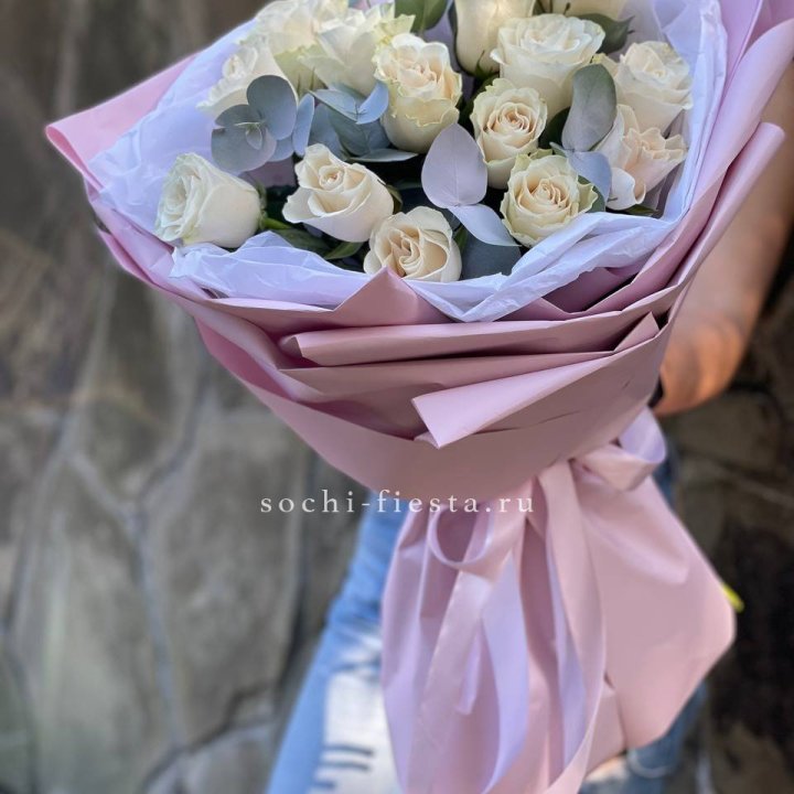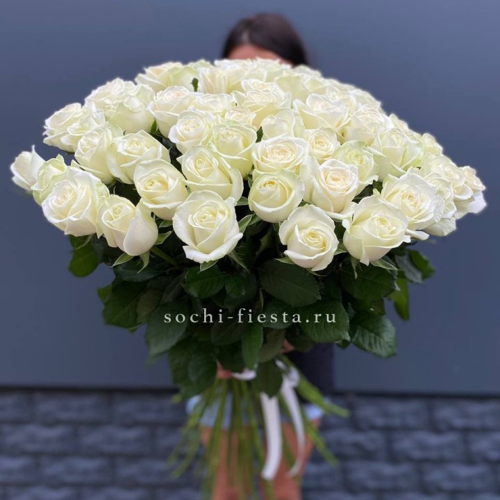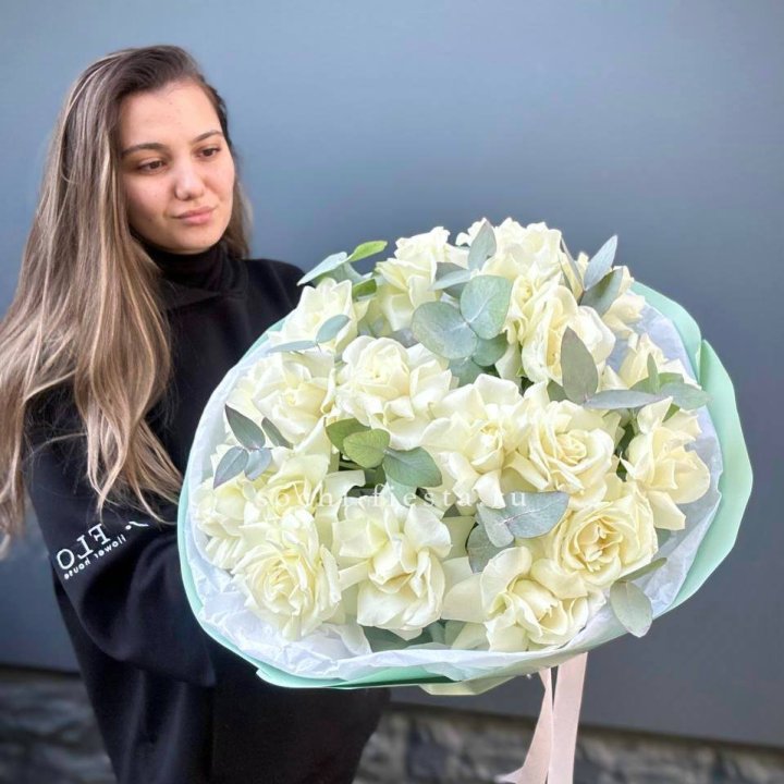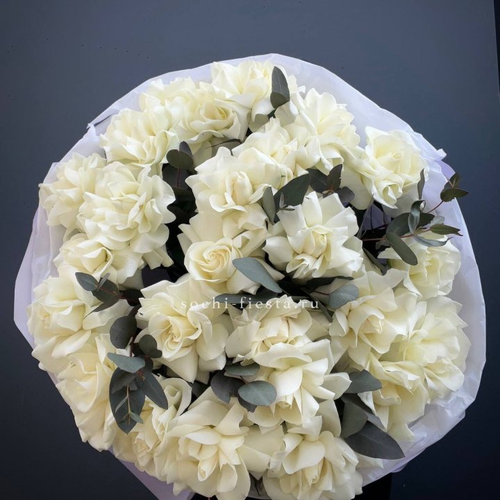 свадебный букет из 101 белой розы Mondial в ростовской студии