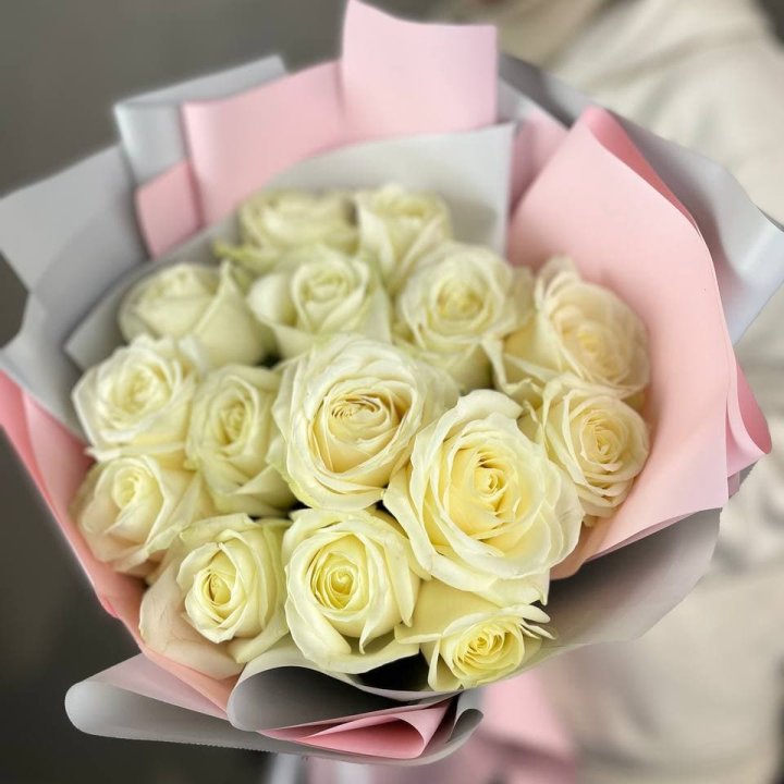 15 белых роз пудра