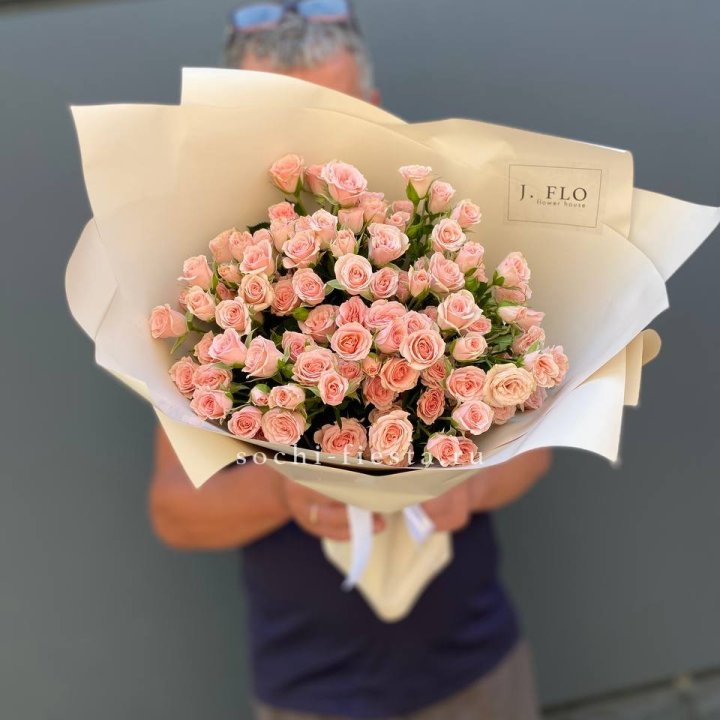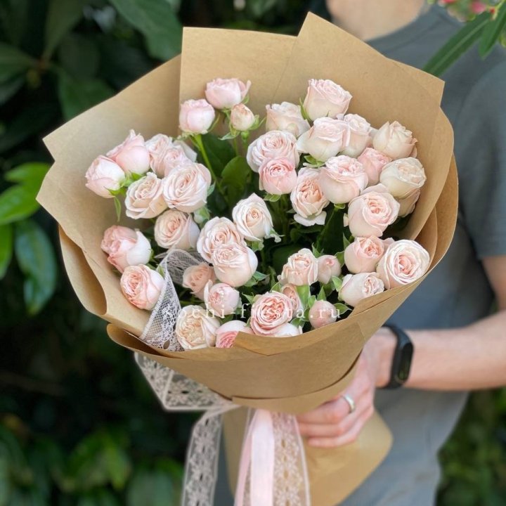 Кустовые пионовидные розы сорта «Бомбастик» отличаются крупным бутонов, нежной текстурой и бледным воздушным оттенком.