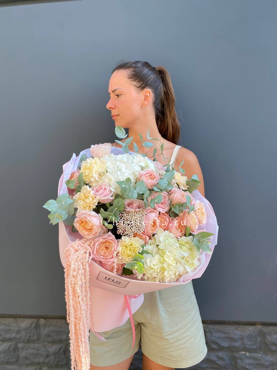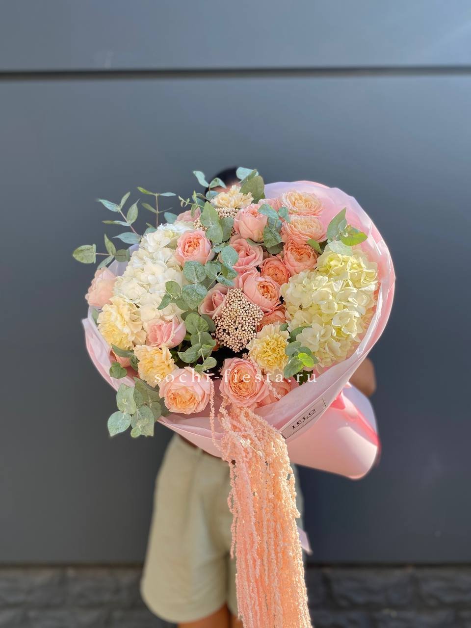 джульетта, озатамус, диантус, гортензия, розовая роза, амарант, оформление.